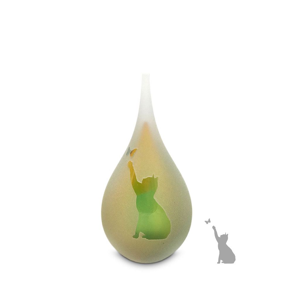 Mini- Urne Druppel Gold-Green Poes met 2 vlindertjes